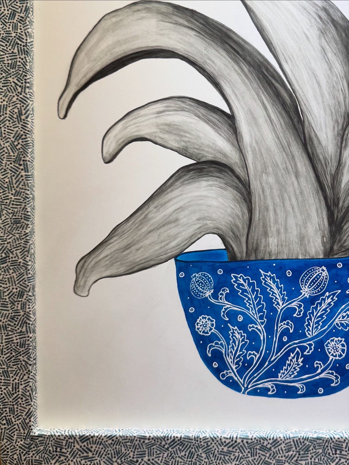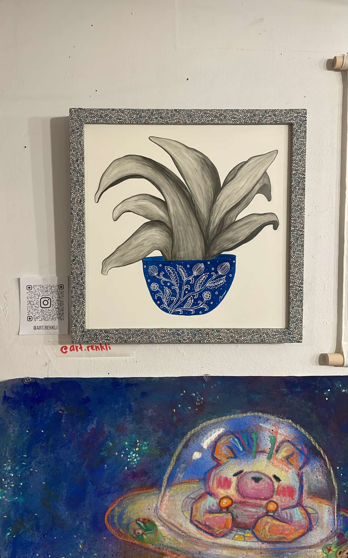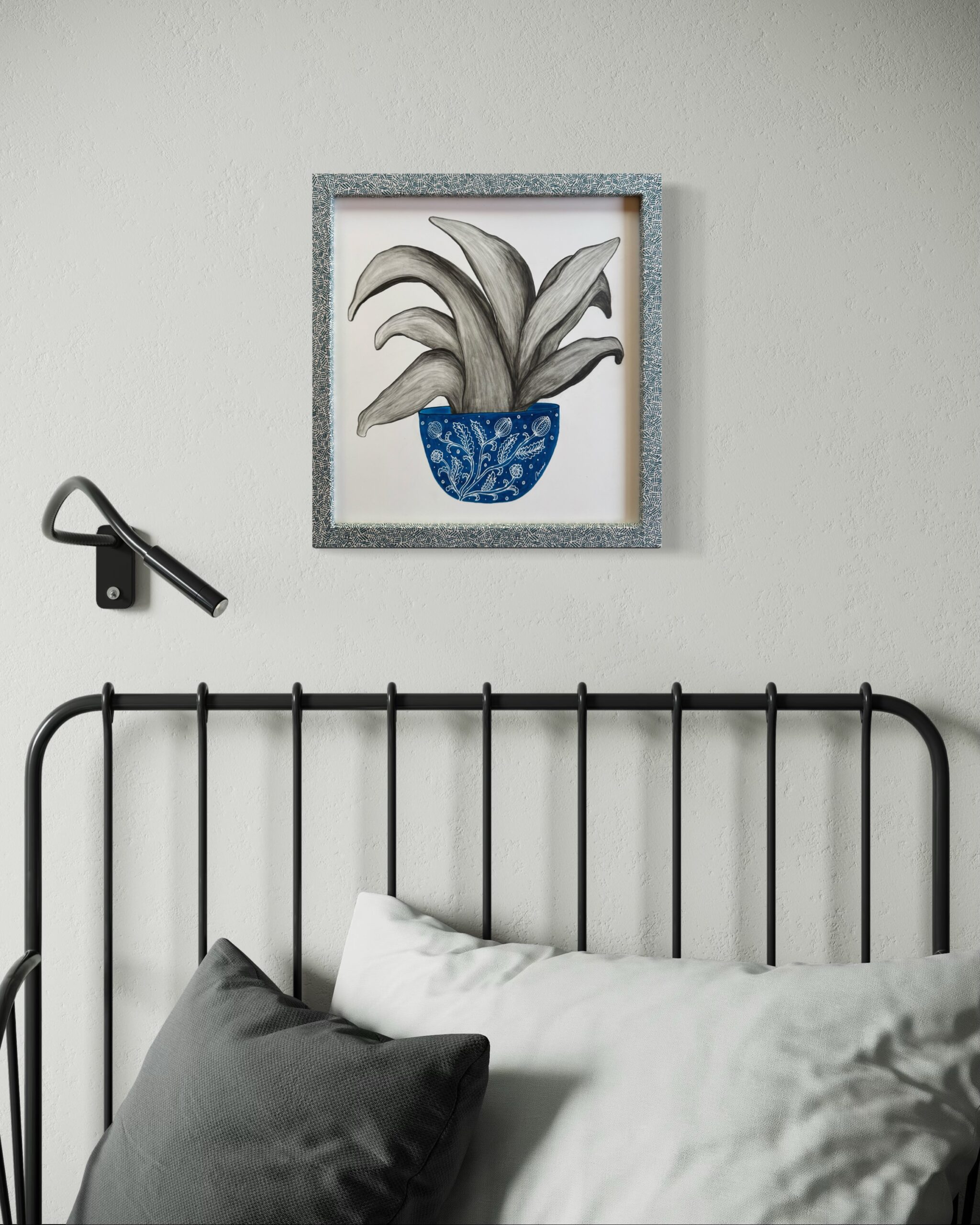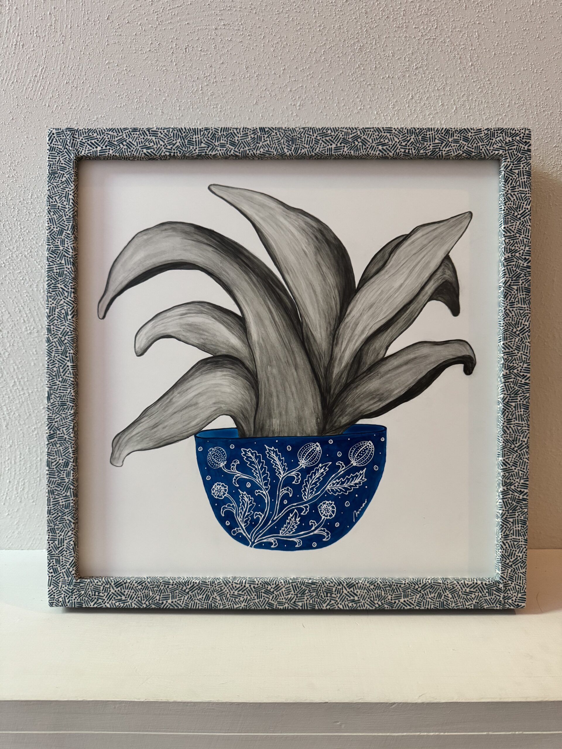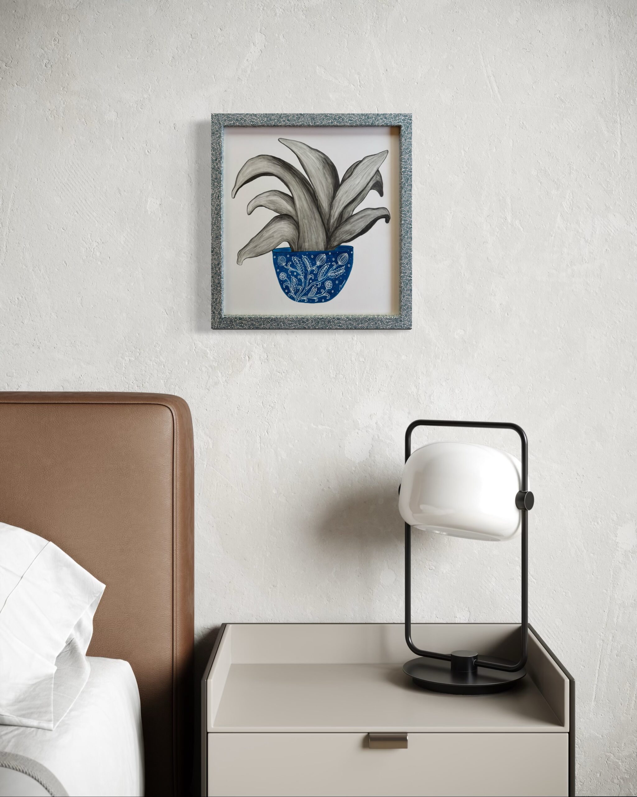 D-rings with wire are attached at the back for hanging. Comes with the fabric covered floating frame (13×13 in).